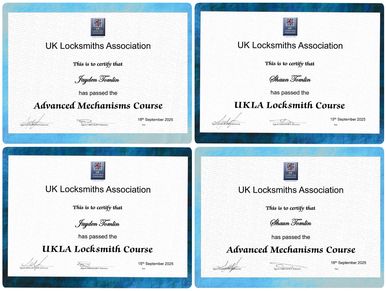 Successfully completing our course with the UK Locksmith Association confirms that we are fully vetted, trusted professionals, and we proudly wear their badge as a mark of quality and reliability.